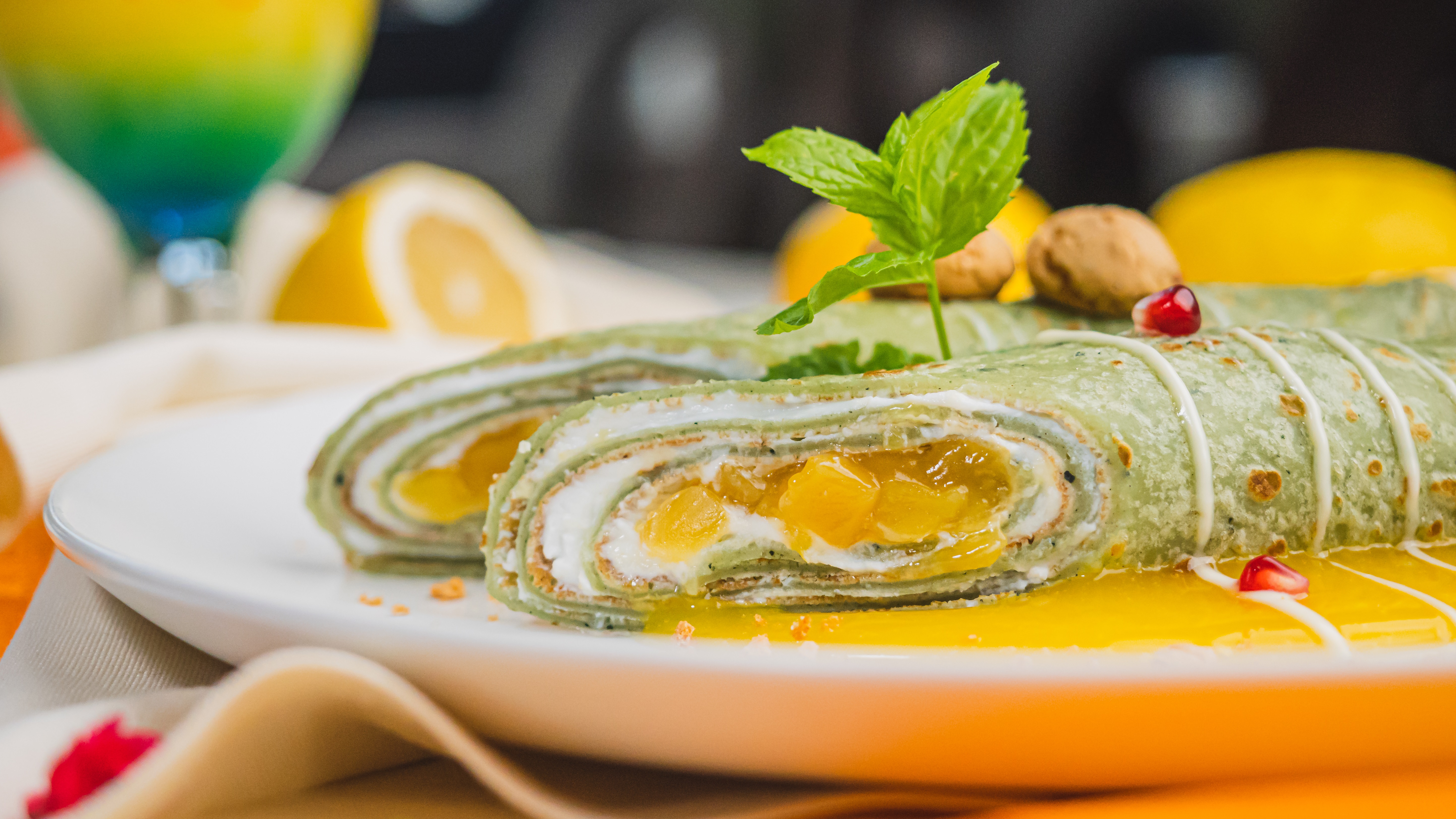 A mangó számomra az egyik legegzotikusabb gyümölcs a Creppy repertoárjában, ami érdekes párost alkot a lágy ricottával, ezért is lesz vadító e két komponens íztánca. Mindezt a matcha által zöldre színezett, feltűnő ruhában, mely további addícióként szolgál több érzékszervünknek is.